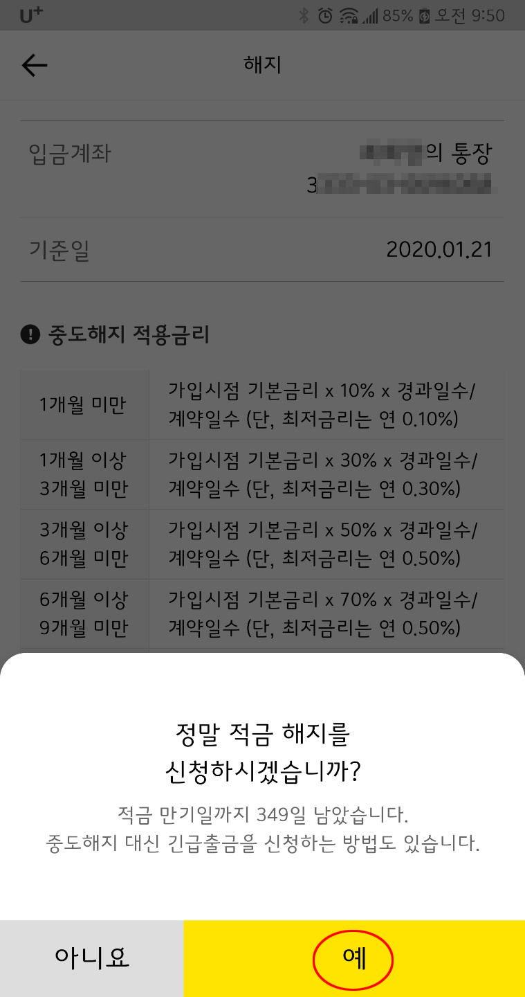 보안인증과 비밀번호만 알면 적금 해지도 쉽게 할 수 있어서 편리하네요.
