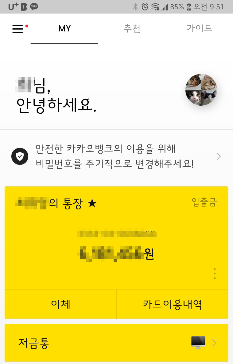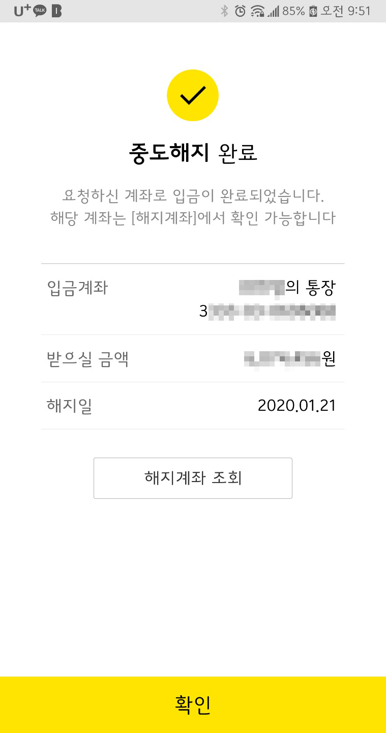 과감하게 자동연장된 카카오뱅크 적금을 해지하게 되었습니다.